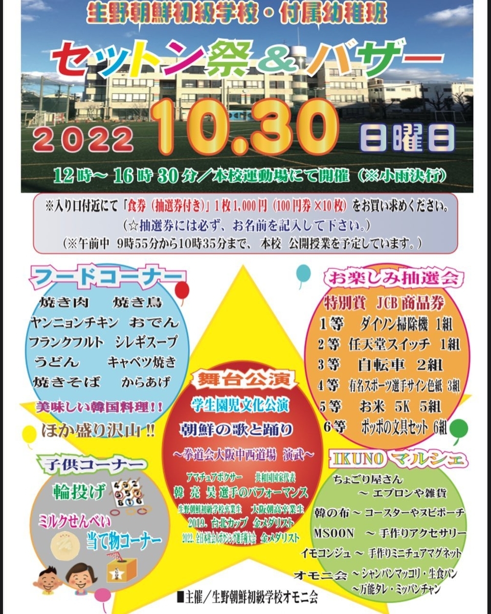 - 生野朝鮮初級学校・付属幼稚班セットン祭 & バザー チラシはこちら