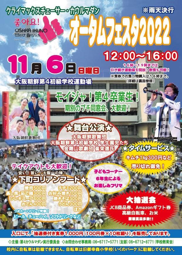 於:大阪第4朝鮮初級学校(大阪市生野区桃谷4丁目9-22) - 11月19日(土)10:00~14:00