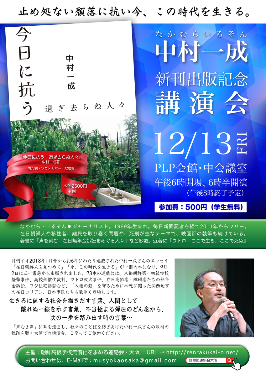 「声なき声」に耳を澄まし、数々のことばを紡ぎあげた中村一成さんの取材の軌跡を聴く大阪での講演会、こぞってご参加ください。